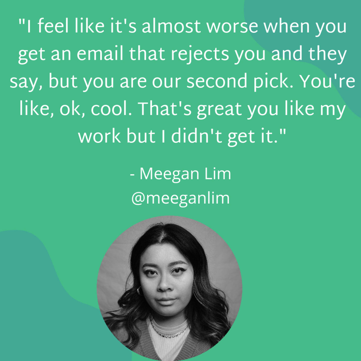 "I feel like it's almost worse when you get an email that rejects you and they say, but you are our second pick," she says. "You're like, ok, cool. That's great you like my work but I didn't get it."