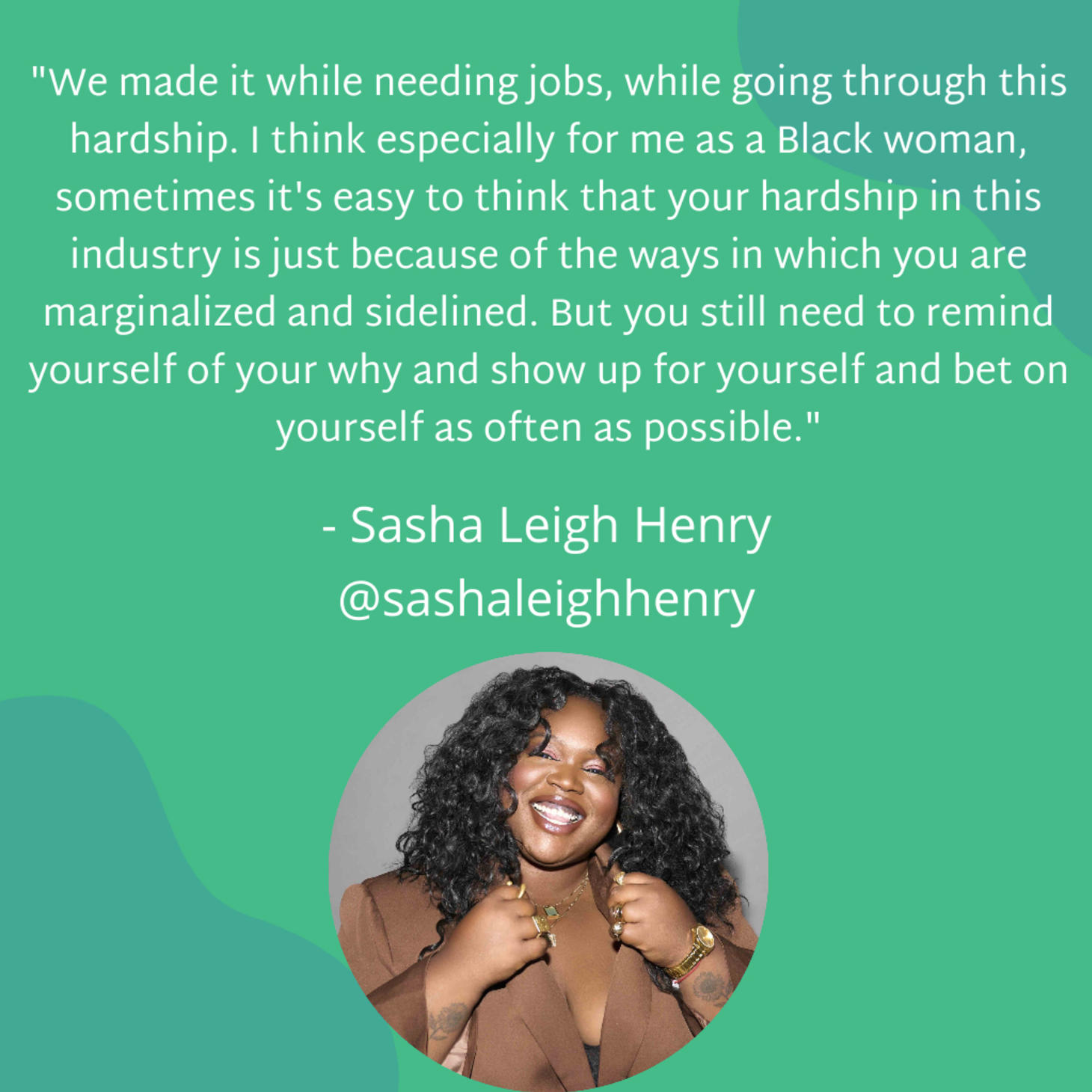"We made it while needing jobs, while going through this hardship. I think especially for me as a Black woman, sometimes it's easy to think that your hardship in this industry is just because of the ways in which you are marginalized and sidelined. But you still need to remind yourself of your why and show up for yourself and bet on yourself as often as possible."