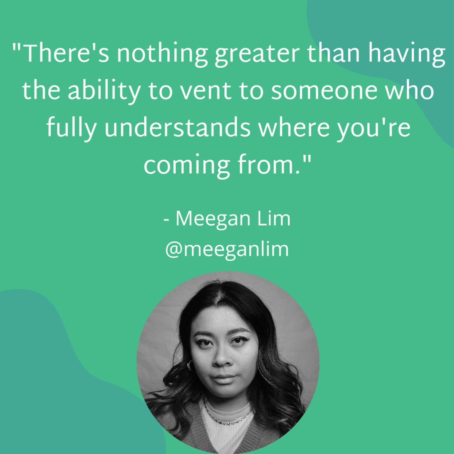 "There's nothing greater than having the ability to vent to someone who fully understands where you're coming from... It's completely different if you vent to your family member who's in a completely different industry versus someone who is your peer, your colleague, and they can get into the nitty gritty with you."