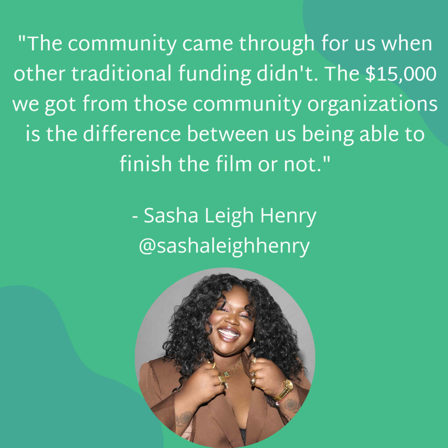 "The community came through for us when other traditional funding didn't. The $15,000 we got from those community organizations, OYA Media Group and the Black Screen Office, is the difference between us being able to finish the film or not."