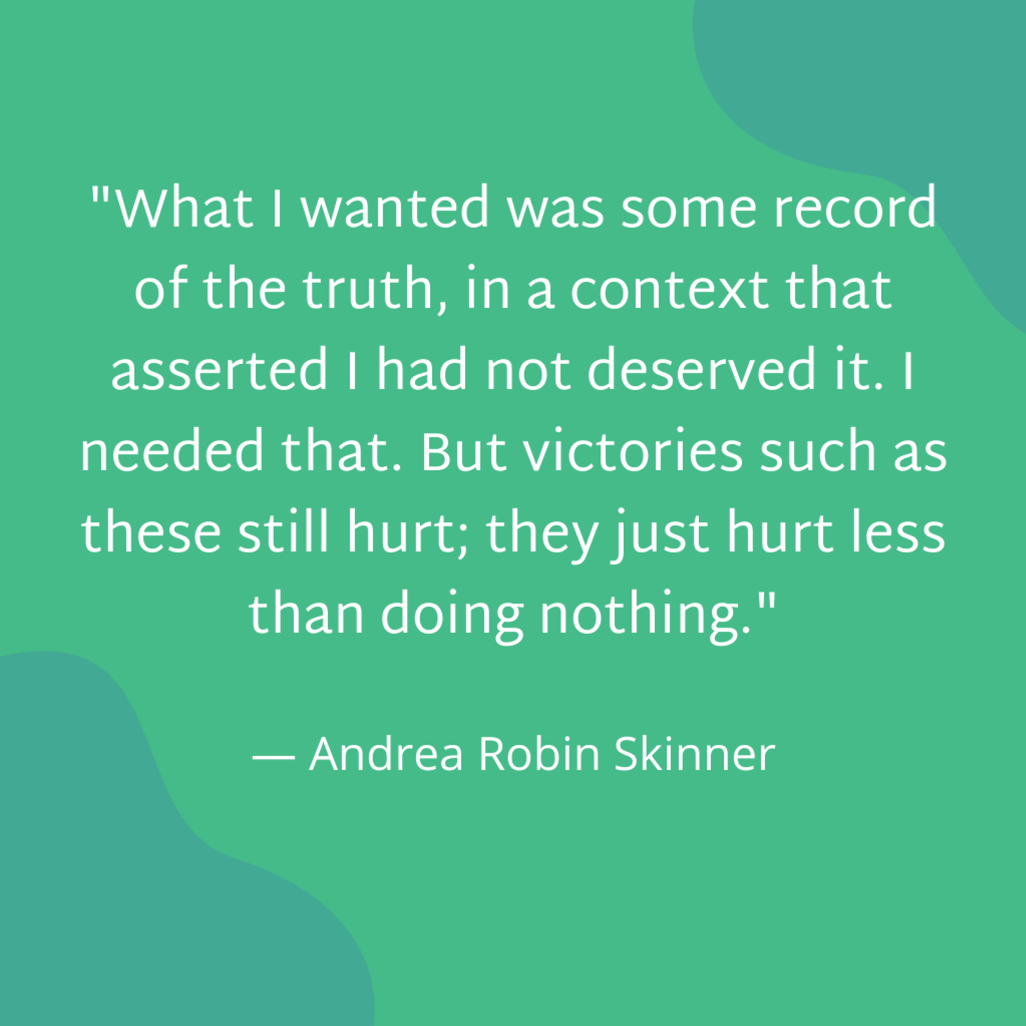 "What I wanted was some record of the truth, in a context that asserted I had not deserved it. ... But victories such as these still hurt; they just hurt less than doing nothing."