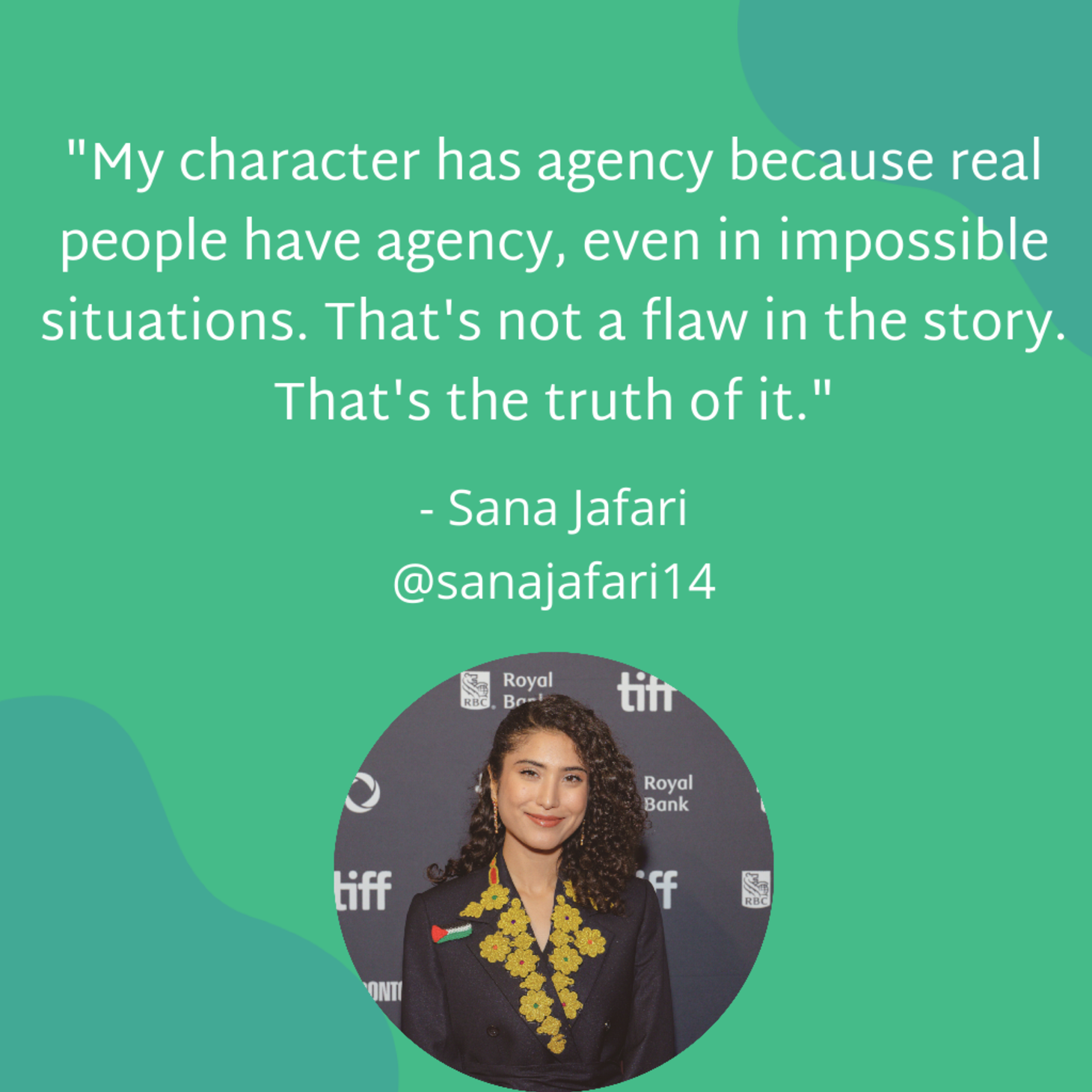 "My character has agency because real people have agency, even in impossible situations. That's not a flaw in the story. That's the truth of it."